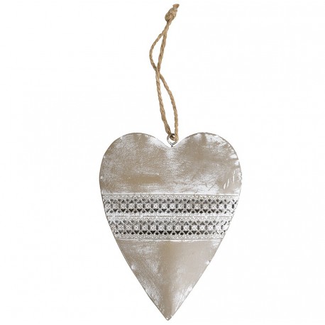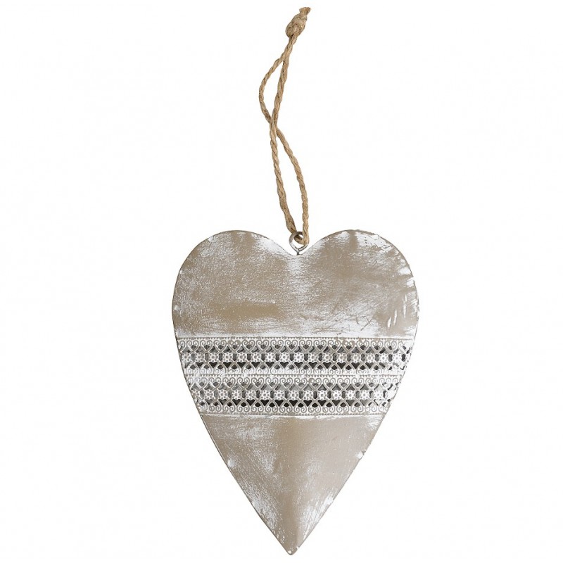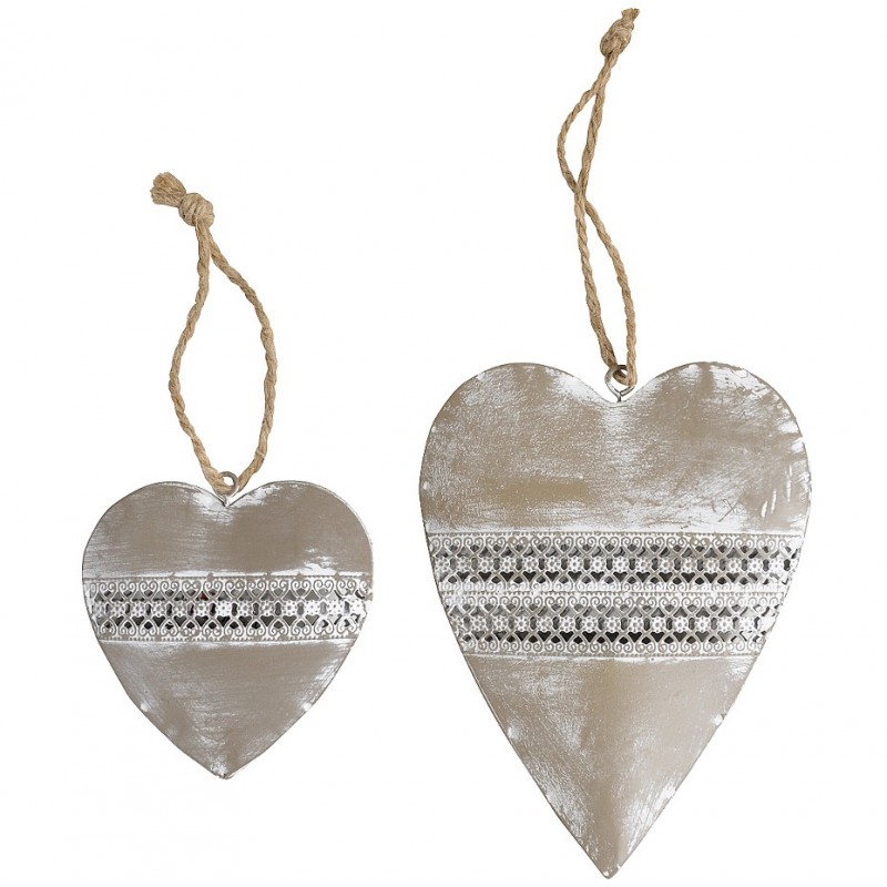 Finezyjnie powycierane, metalowe zawieszki moga stać się nie tylko ozdobą wnętrza, ale także wyjątkowym prezentem dla bliskiej osoby. Zawieszki dekoracyjne w formie trójwymiarowego serca o wydłużonym kształcie z prostym, pasującym do całości sznureczkiem.