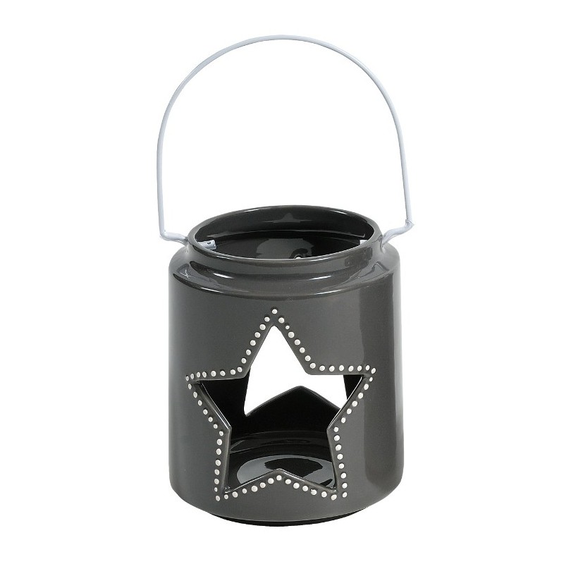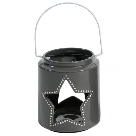 Lampion z otworem Belldeco w kolorze ciemnej szarości to piękny świetlik w kształcie błyszczącej puszki z wyciętą wewnątrz gwiazdką.