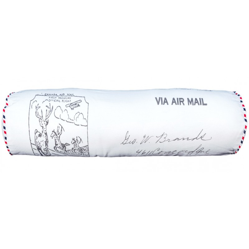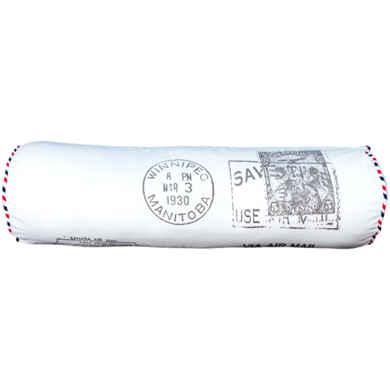 Duża poduszka wałek o długości siedemdziesięciu centymetrów. Poduszka wykonana jest z białej bawełny i wykończona w marynistycznych kolorach.