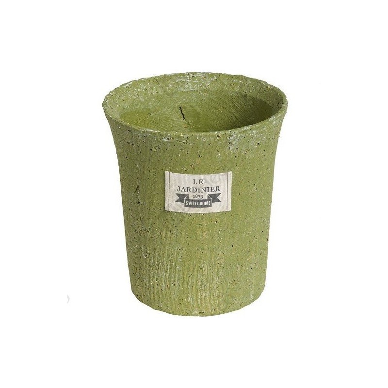 Osłonki na donice Belldeco mające bardzo ładny, zielony kolor i chropowatą w dotyku, matową powierzchnię. Na osłonkach znajduje się kawałek lnianego materiału z czarnymi napisami w stylu prowansalskim. Do osłonek polecamy inne osłonki na doniczki z tej samej kolekcji, o innych kształtach i kolorach.
