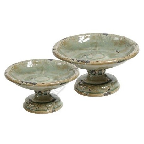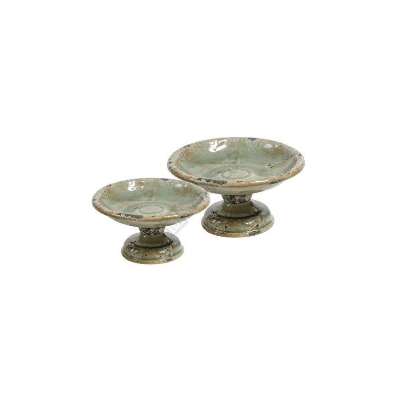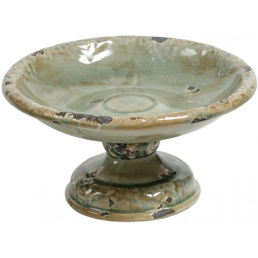 Seledynowo-brązowa patera Mokka Belldeco z czarnymi przetarciami. Patera jest szkliwiona i pokryta widoczną jedynie z bliska siateczką delikatnych spękań.