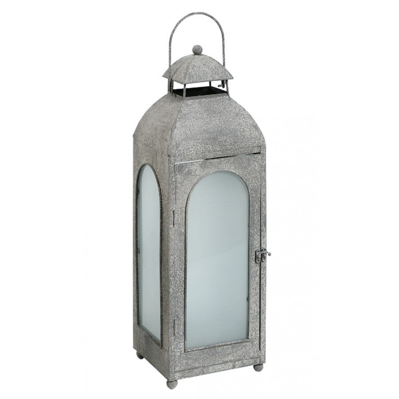 Lampion Grigio Belldeco wysoki na 56 cm i wykonany z metalu oraz mlecznego szkła.