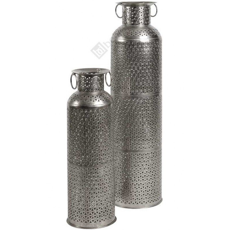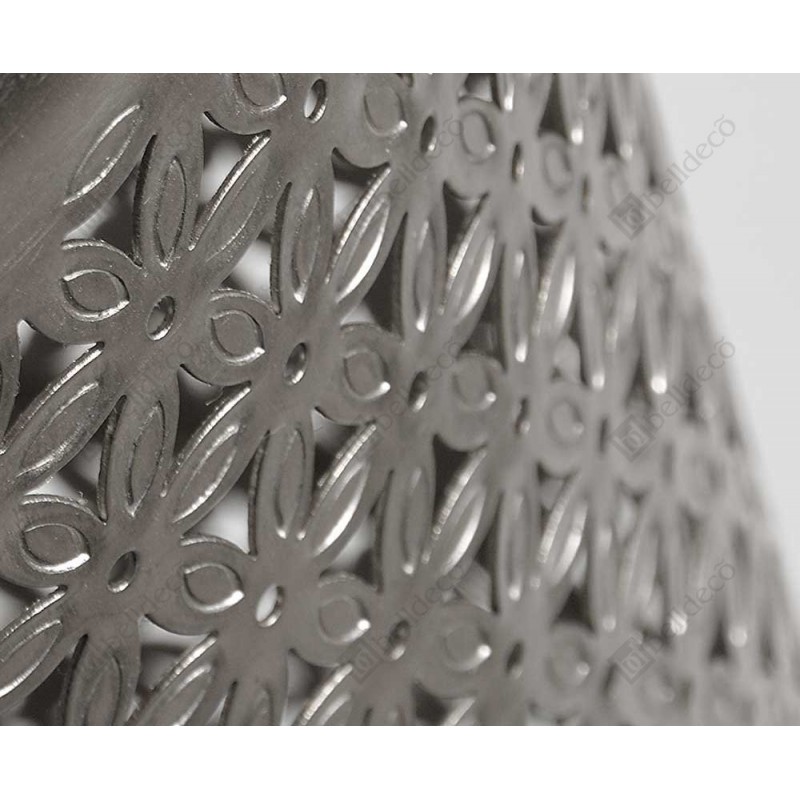 Ażurowy lampion Belldeco z kolekcji metalowyh dodatków do domu Orient. Ścianki lampionu wykonane są z ażurowego, kwiatowego wzoru, przez który pięknie "przechodzi" światło świec. Lampiony mogą także pełnić funkcję dekoracji lub wazonu na sztuczne kwiaty.