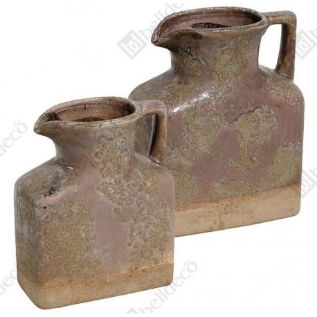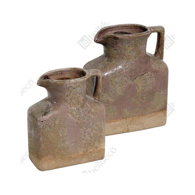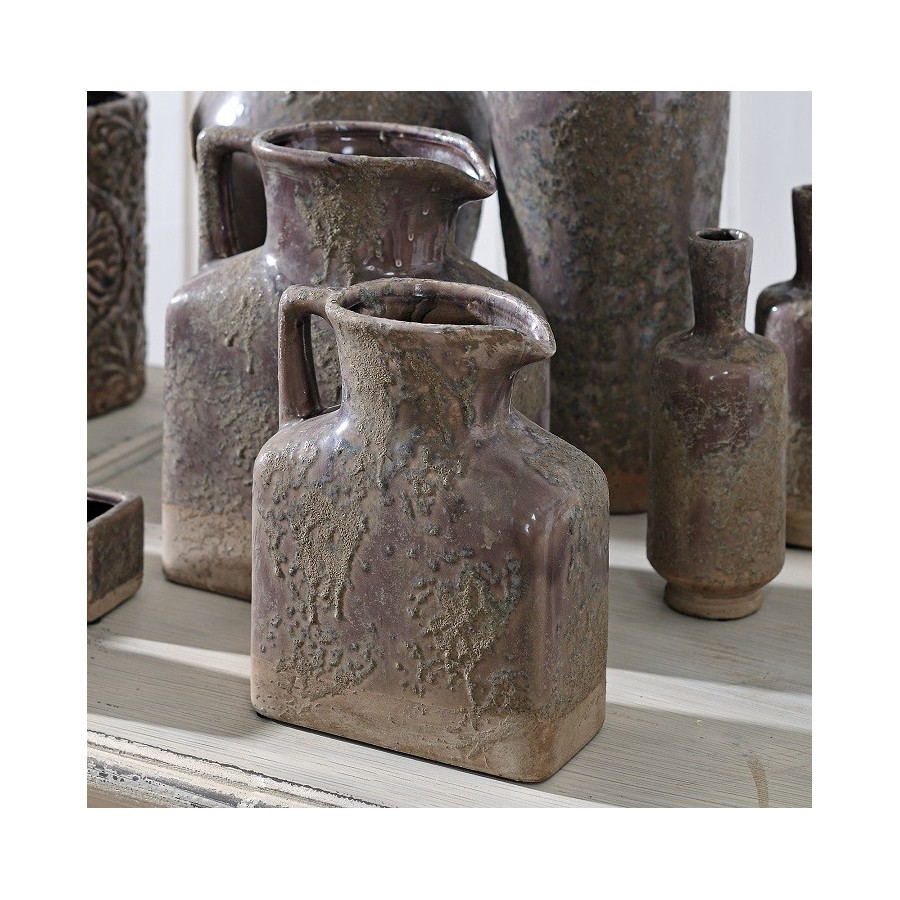 Postarzany dzban Belldeco wykonany z terakoty i pochodzący z kolekcji Lill Old o śliwkowej kolorystyce.