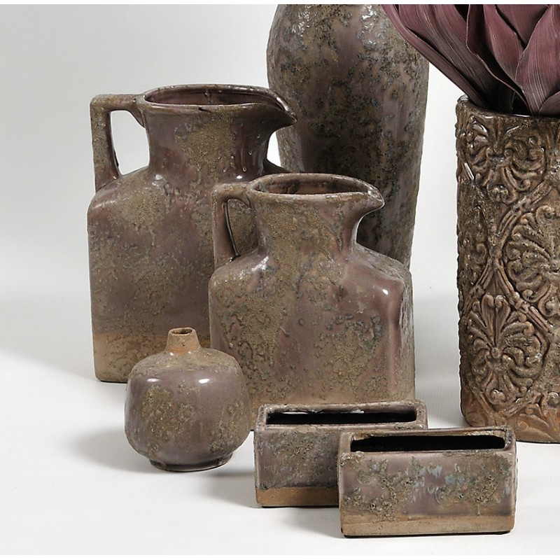 Stylowy dzban Belldeco z serii Lill Old o ciekawym, śliwkowym kolorze z licznymi przetarciami. Dół oraz przetarcia na dzbanie są matowe i chropowate, natomiast te miejsca w których dzbanek jest ślwikowy są szkliwione. Dzban świetnie sprawdzi się jako dekoracja lub wazon na kwiaty.