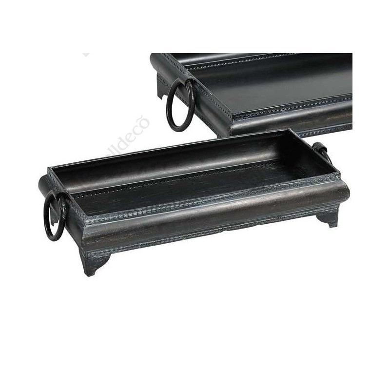 Metalowa taca Belldeco to ładny dodatek, służący do przenoszenia przedmiotów w bezpieczny i szybki sposób. U dołu tacy zamontowano cztery nóżki, a po bokach okrągłe uchwyty. Taca prezentuje się elegancko i dostojnie.
