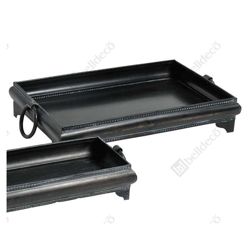 Czarna taca Belldeco to przedmiot wykonany z metalu i wyposażony w wygodne nóżki oraz okrągłe uchwyty. Taca jest niezwykle poręczna, a przy tym niesamowicie ładna. Produkt wykonano ręcznie oraz ozdobiono drobnym wzorem w kształcie kulek.