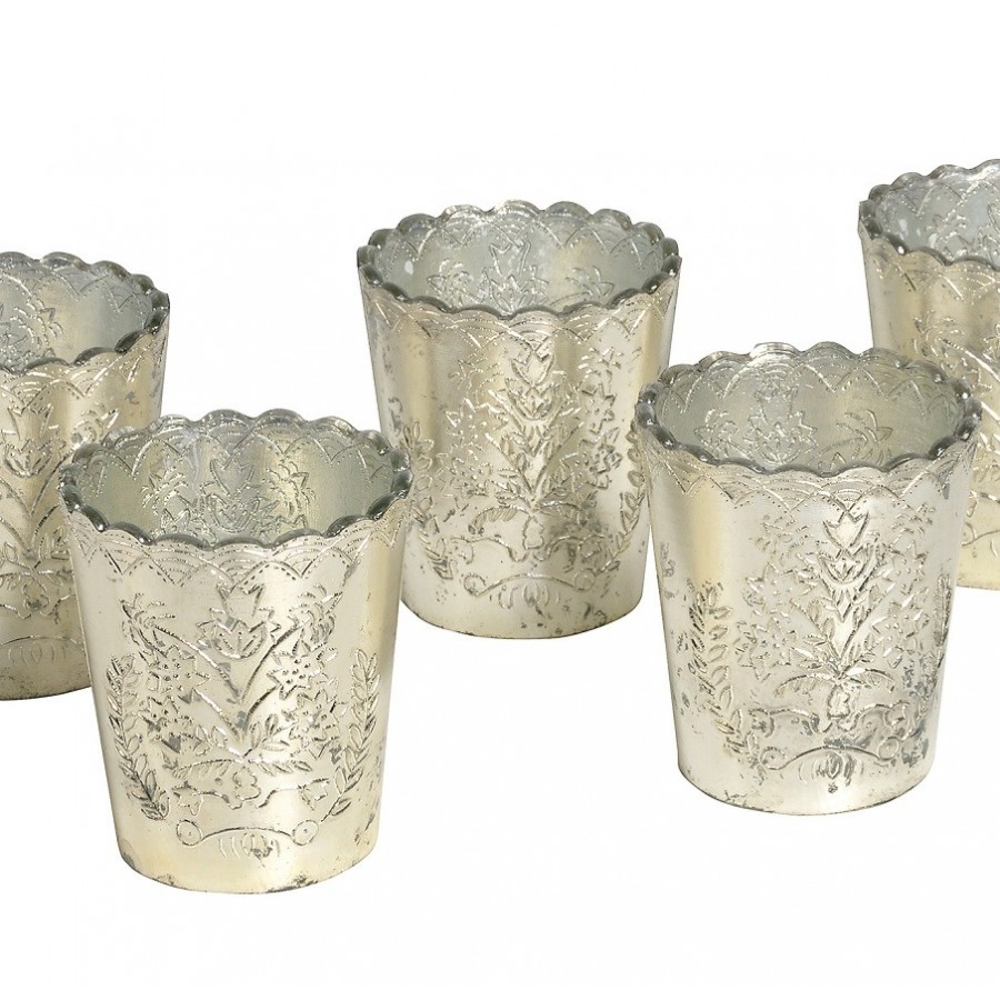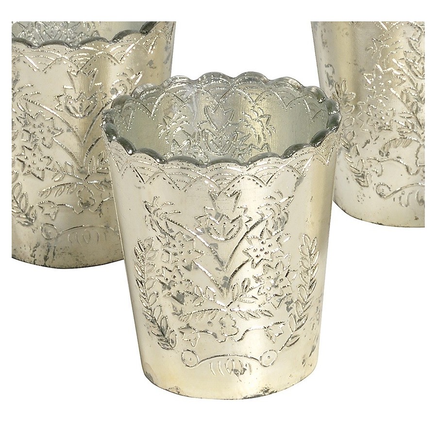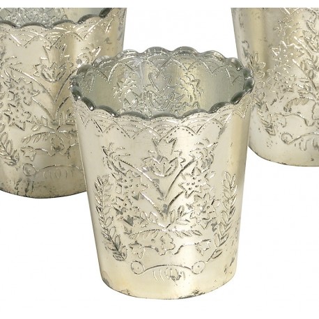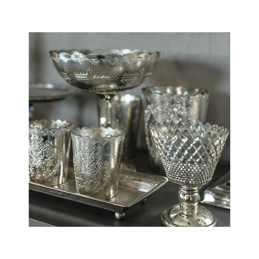 Uroczy świecznik Belldeco zrobiony z posrebrzanego i celowo postarzanego szkła. Świecznik przepięknie wygląda po zapaleniu w nim świeczki, ponieważ ścianki świecznika przepuszczają światło świec tworząc tym samym wyjątkowy nastrój.