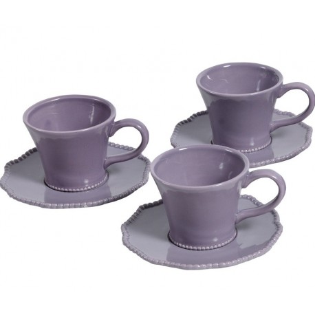 Filiżanka Belldeco to naczynie z uchem, które wspólnie z finezyjnie ukształtowanym talerzykiem tworzy zgrabną całość. Oba naczynka są zdobione bardzo delikatnie tym samym, półokrągłym wzorem, a także kolorystycznie utrzymane w tonie dojrzałej, prowansalskiej lawendy. Ceramika Belldeco - zbierz cały komplet!