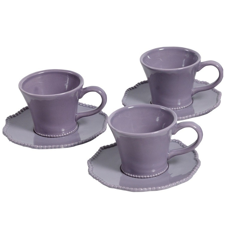 Filiżanki Belldeco to estetycznie zdobione naczynia z uchem utrzymane w kolorystyce ciepłego fioletu.