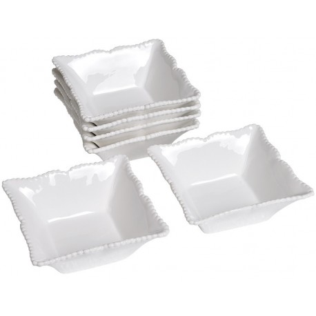 Miseczka Belldeco Parma została wykonana w kształcie kwadratu z ceramiki o białej barwie z połyskiem. Ranty naczynia są nieregularne i zawierają nietypowy wzór – drobne nacięcia, dodające całości krasy. Miseczkę można wykorzystać do podania zupy, owoców czy przekąsek. Ceramika Belldeco – polecamy!