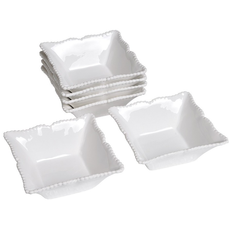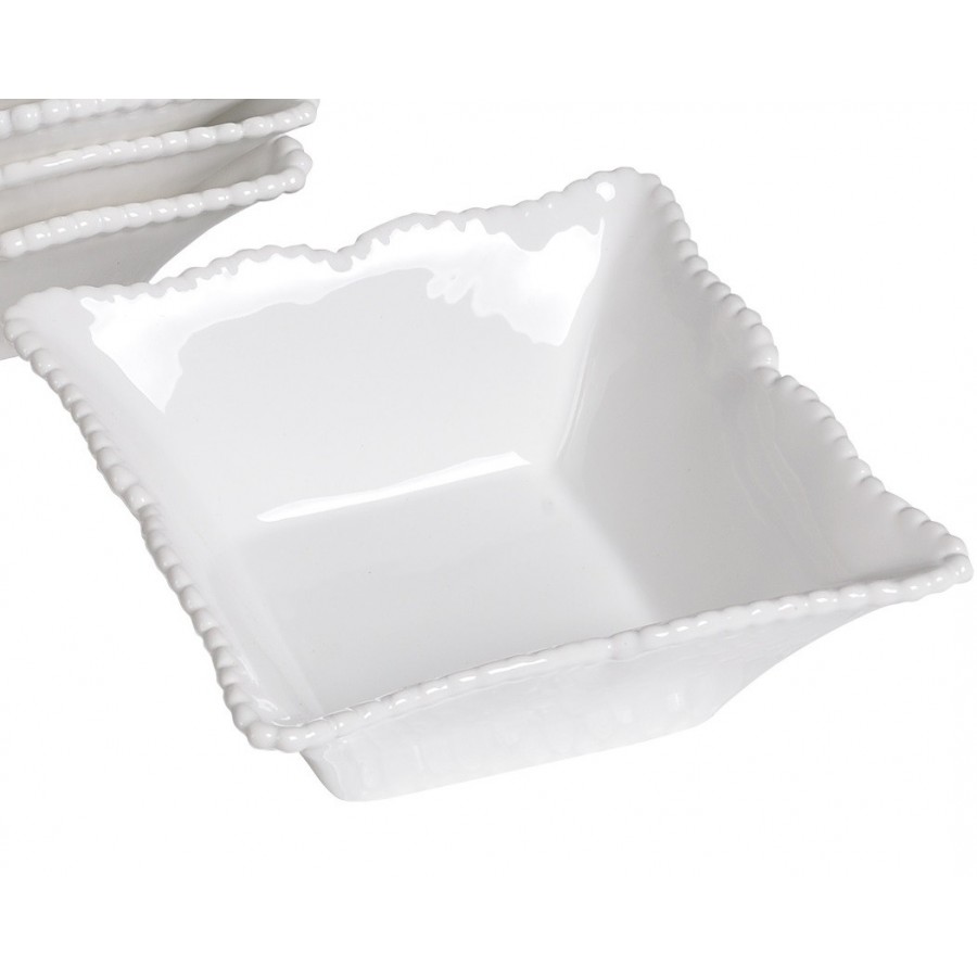 Miseczka Belldeco o nietypowym kształcie kwadratu, została ozdobiona na rantach delikatnym wzorem w postaci małych nacięć.