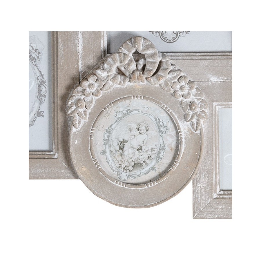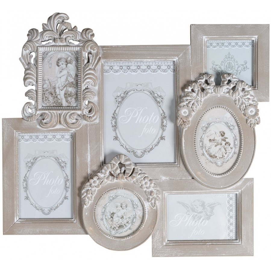 Ramka drewniana na zdjęcia firmy Belldeco. Ramka ma bieloną powierzchnię i posiada siedem różnego kształtu miejsc na zdjęcia. Ramka jest świetną ozdobą ściany w romantycznym stylu, która świetnie spisze się w roli prezentu.