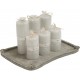 Zapachowe świece Bosco Belldeco w kształcie walca. Świece mają popielaty kolor i bardzo elegancki zapach.