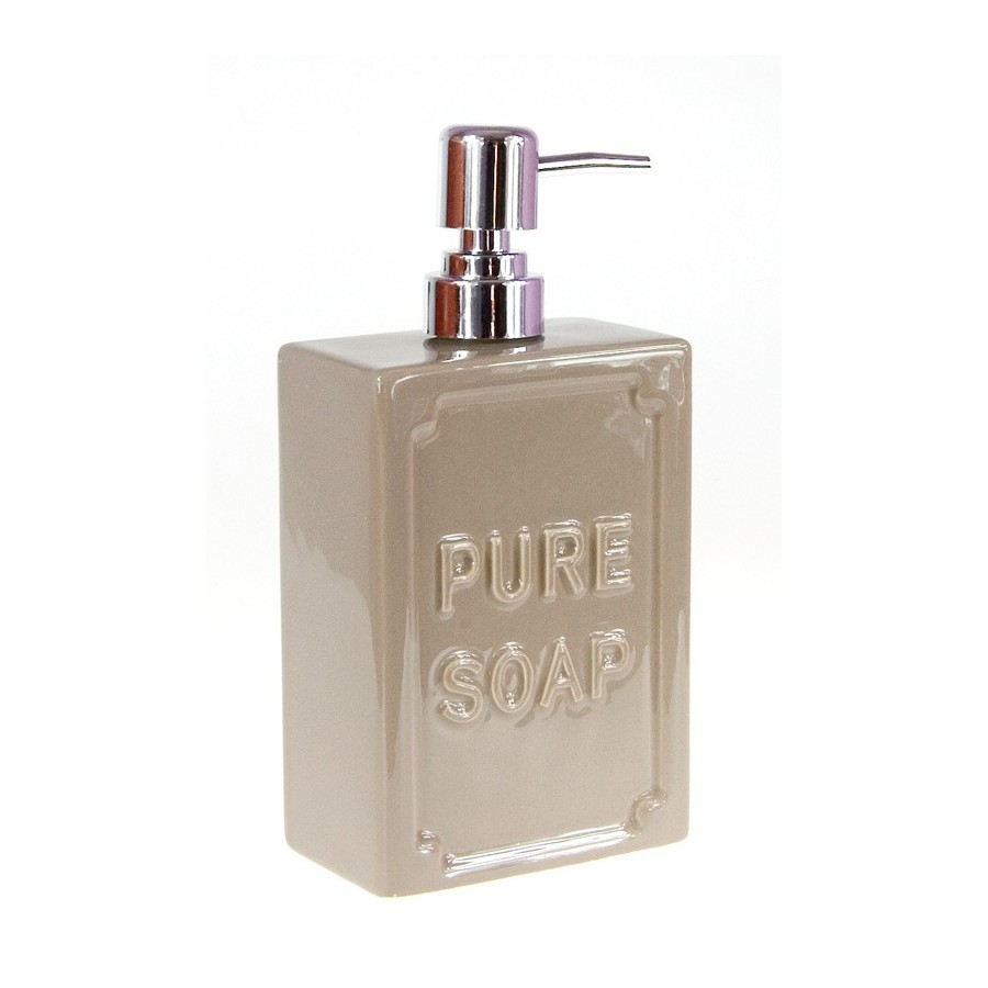 Pojemnik do mydła w płynie z wypukłym napisem PURE SOAP po obydwu stronach. Pojemnik wykonany jest z ceramiki i szkliwiony na wysoki połysk.