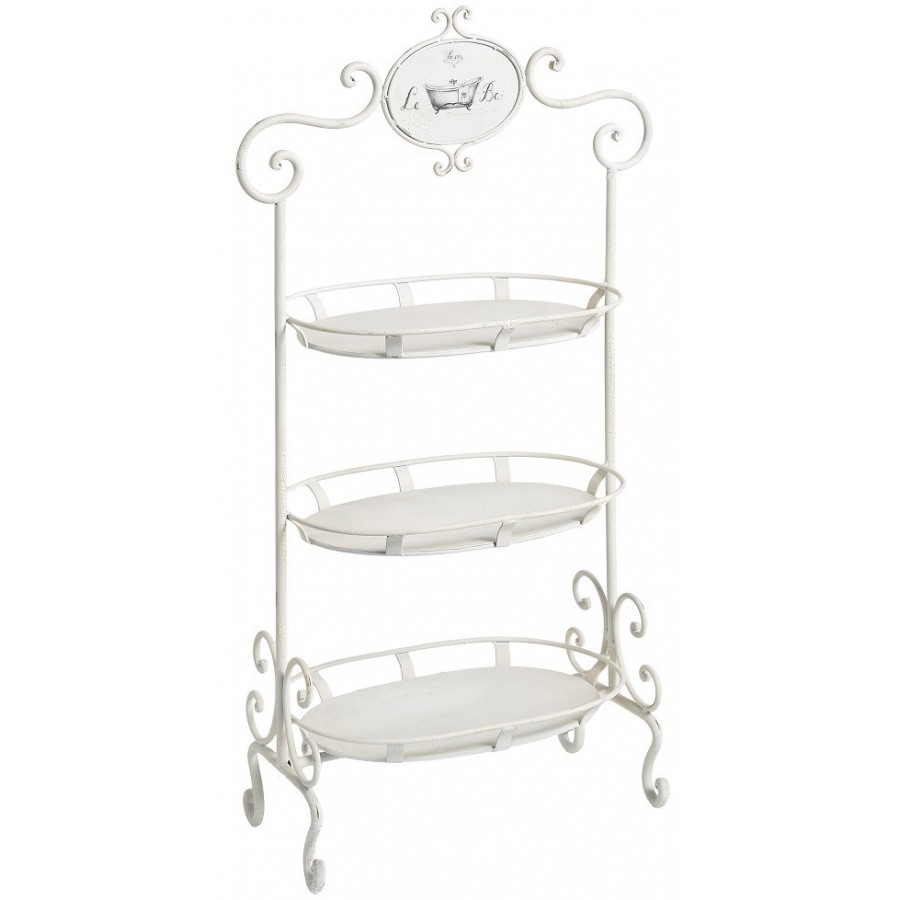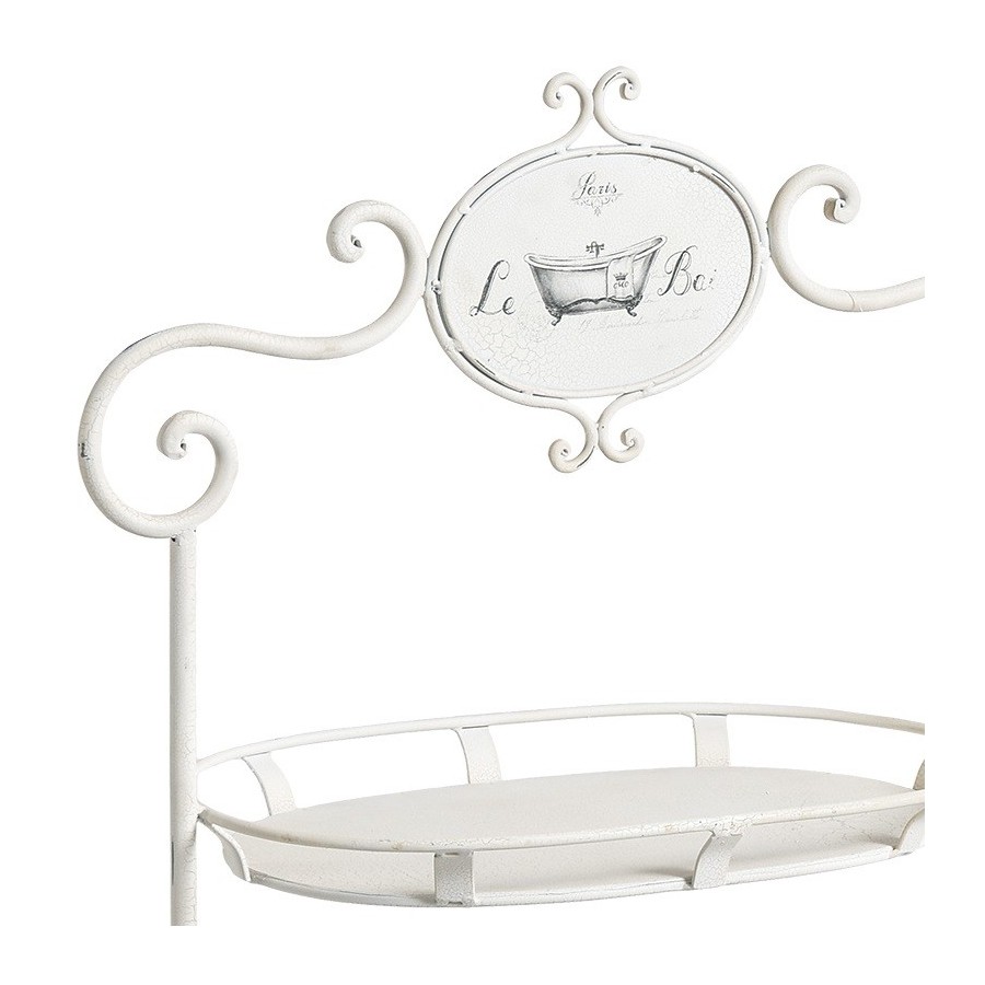 Stojak do łazienki Belldeco Wenecja o białym kolorze z przetarciami, spękaniami i odpryskami farby. Stojak ma biały kolor, a w jego górnej części znajduje się tabliczka z motywem wanny i z napisami w języku francuskim. Do stojaka polecamy wieszaki, stojaki i półki łazienkowe Belldeco z tej samej serii.