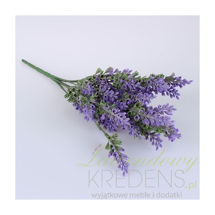 Sztuczna lawenda to świetna alternatywa dla kwiatów ciętych. Sztuczne kwiaty lawendy dają także możliwość dodania koloru i świeżości w miejcach, gdzie żywe kwiaty nie mogłyby rosnąć ze względu na za dużą wilgoć lub brak słońca. Lawenda ta ma zielone gałązki i drobne, fioletowe kwiatuszki. Cena dotyczy jednej gałęzi wraz z mniejszymi, odchodzącymi od niej gałązkami.