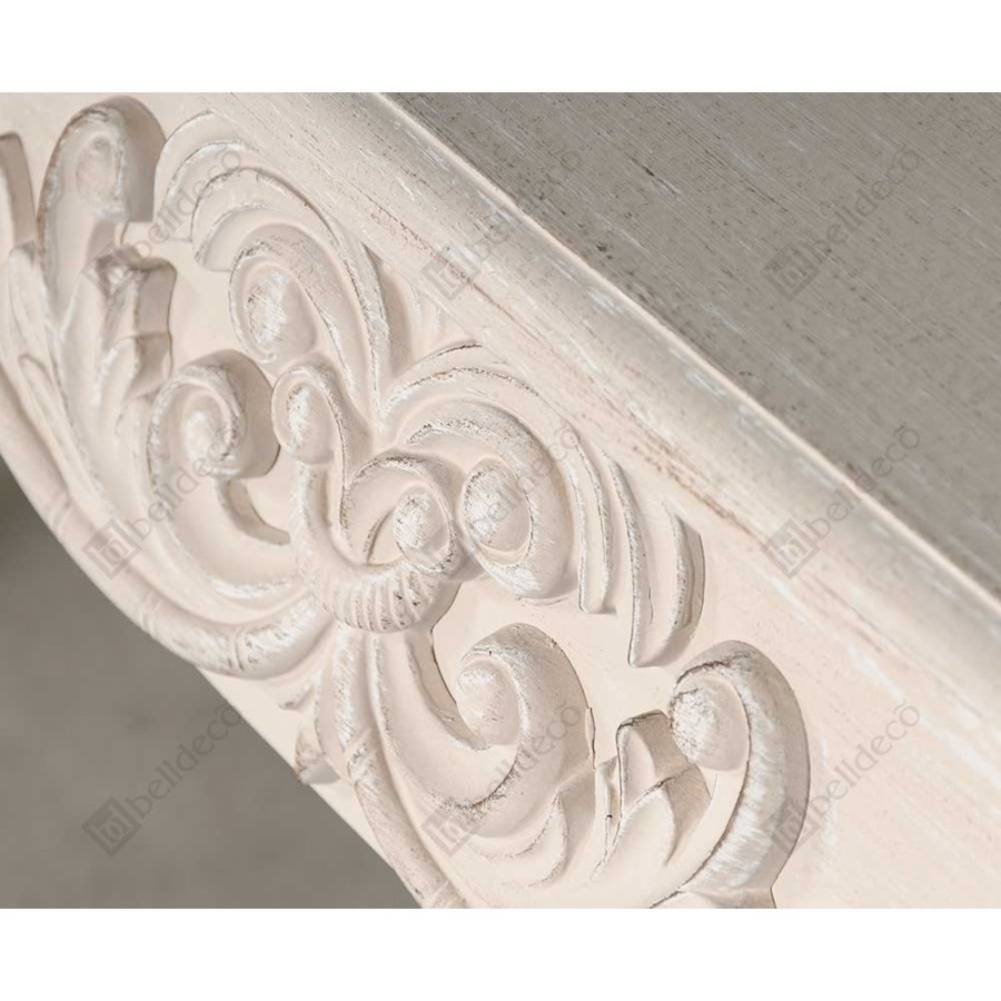 Prowansalska konsola Belldeco z serii Bosco w której znajdą Państwo różnorodne meble prowansalskie oraz lustra wykonane z drewna paulownia charakteryzującego się przede wszystkim lekkością. Na drewnie tym widoczne są białe przetarcia oraz bardzo subtelne, brązowe przecierki. Meble te mają matową kolekcję, zdobione są pięknymi rzeźbieniami.