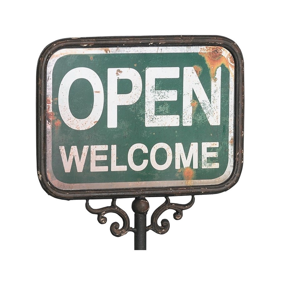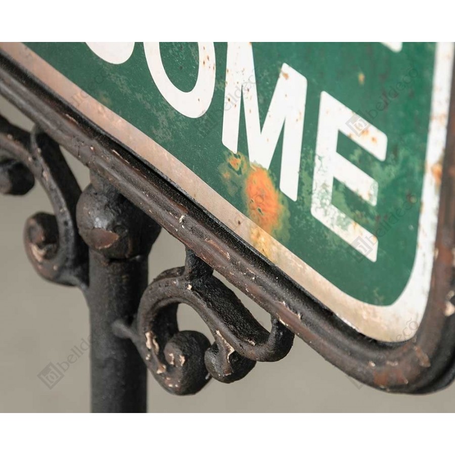 Metalowy stojak Belldeco w stylu retro z tabliczkami na których znajdują się nadruki z angielskimi napisami. Powierzchnia nadruków jest celowo stylizowana na starą poprzez imitacje rdzy. Do stojaków można dobrać rozmaite wieszaki, zawieszki i obrazki ścienne ozdobione nadrukami w tym samym stylu.