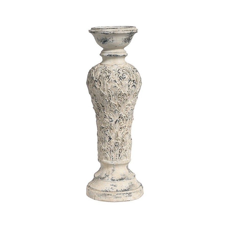 Cudowny świecznik Belldeco to propozycja dla wielbicieli antycznych kształtów w białym kolorze i z czarnymi postarzeniami. Świecznik wygląda niezwykle wyjątkowo, a wzór umieszczony na jego powierzchni to dekoracja w kształcie kwiatu akantu. To świecznik z terakoty, na którego wierzchu przygotowano specjalną powierzchnię pod umieszczenie aromatycznie pachnącej świeczki.