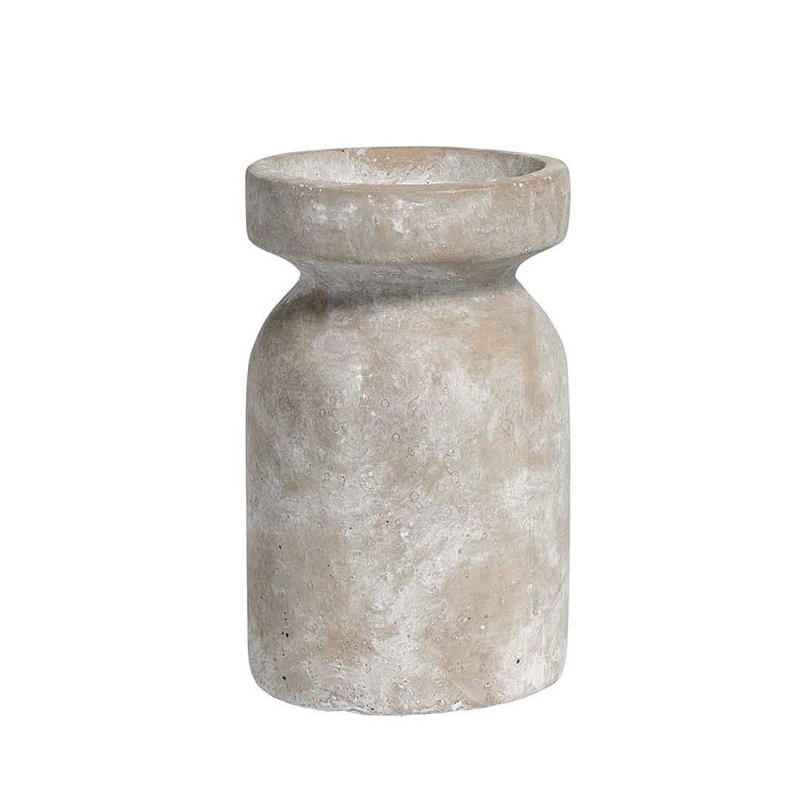 Świecznik marki Belldeco o owalnym kszatłcie, o niejednolotym, szaro-brunatnym kolorze. Nieszkliwiona matowa tekstura, pogłębia wrażenie naturalności i powiązania z naturą. Idealne do dużych świec stojących oraz do świeczek typu tea light.