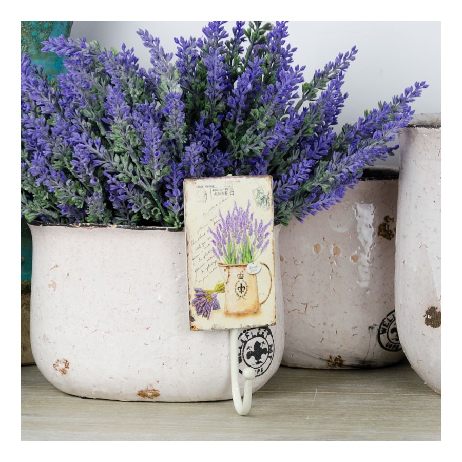 Wieszaki ścienne z lawendą wykonane z metalu i kolorowego nadruku. Prowansalski wzór czyni z wieszaczków piękną dekorację będącą świetną alternatywą dla zwykłych wieszaków ściennych.