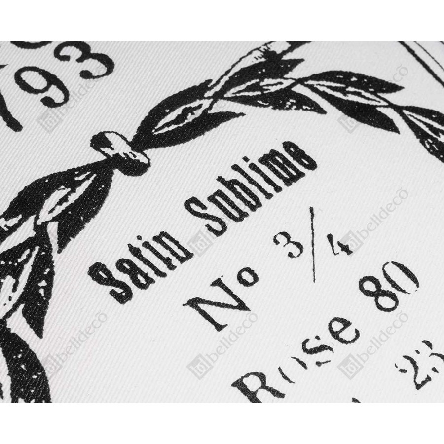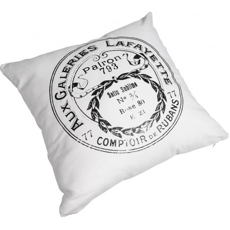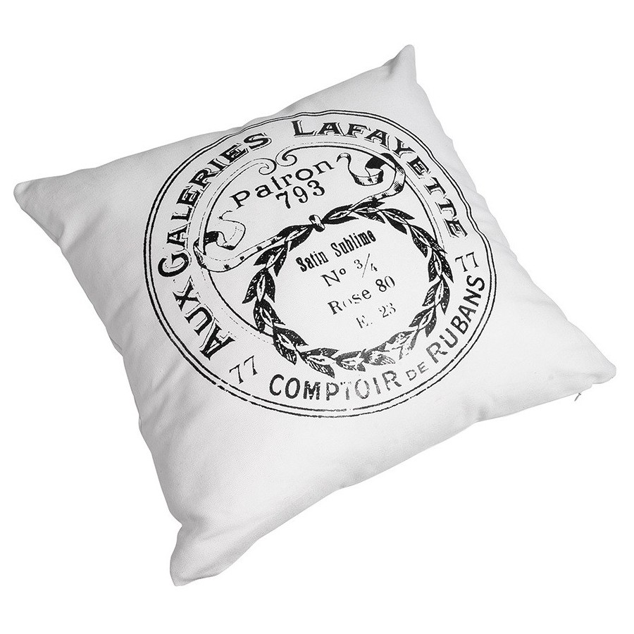 Biała poduszka Belldeco Romantic z czarnym wzorem z napisem Lafayette oraz innymi czarnymi napisami