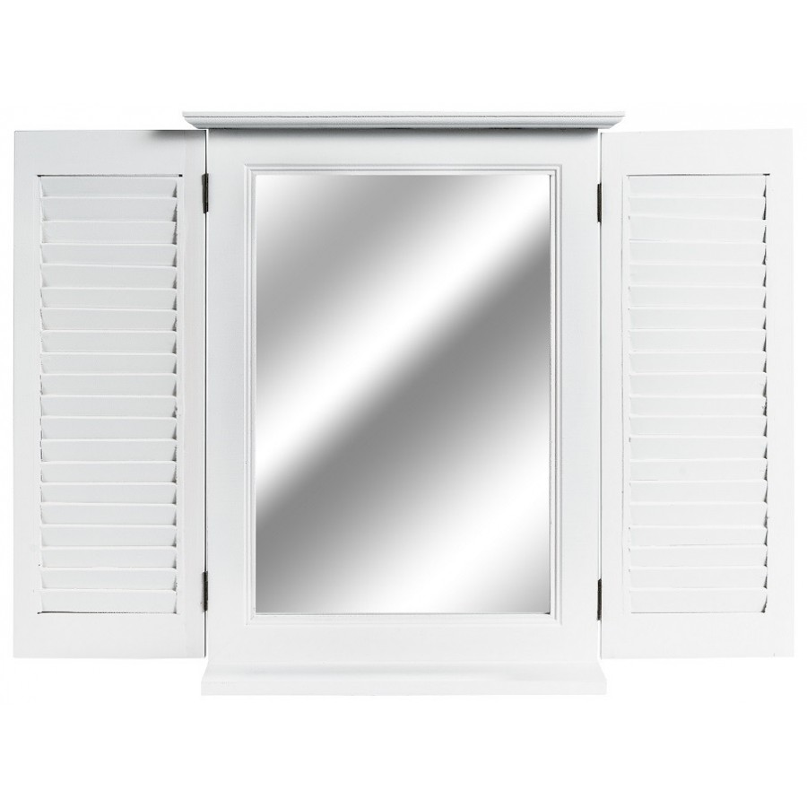 Magiczne lustro prowansalskie w formie okiennicy, zamykane dwuskrzydłowowo z ozdobnym wykończeniem szczytu.