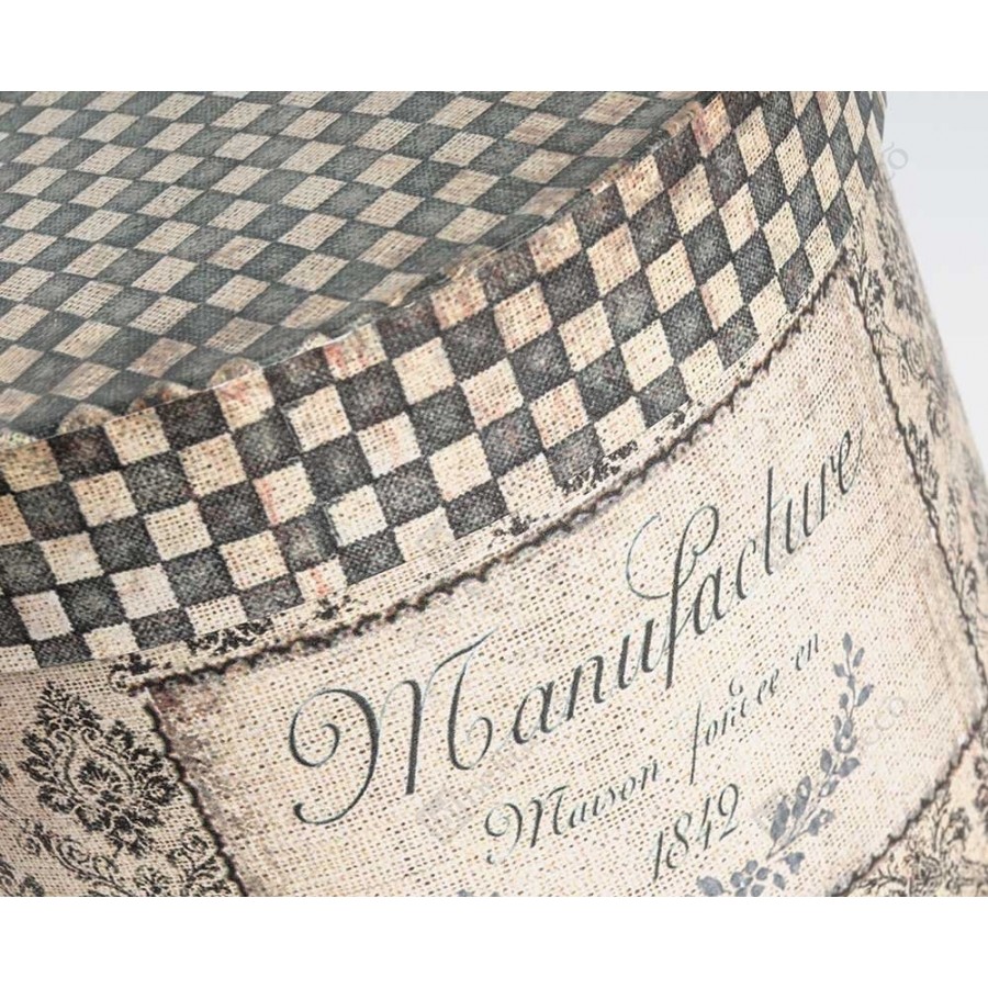 Pudło Belldeco to piękny pojemnik o owalnym kształcie, wyposażony w przykrywkę zdobioną czarno-białą kratką.