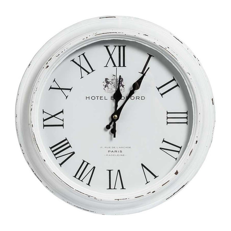 Wyjątkowy zegar ścienny o średnicy tarczy 39 cm. Biała tarcza i niezwykła, stylizowana na starą, miejscami poocierana, drewniana oprawa, sprawiają, iż czarne wskazówki i cyfry są bardzo widoczne. Jednocześnie tak dobrane barwy tworzą stonowany, klasyczny klimat rodem w dawnych lat. Niezwykły pomysł na prezent!