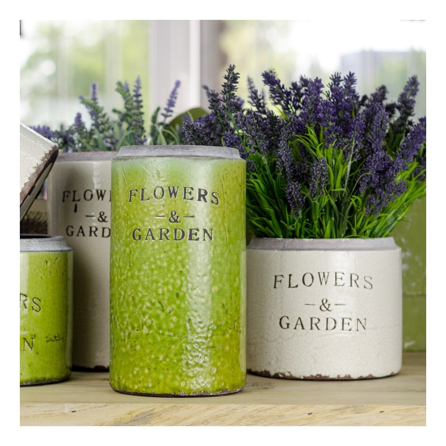 Piękny wazon FLOWERS & GARDEN o zielonej, szkliwionej powierzchni.