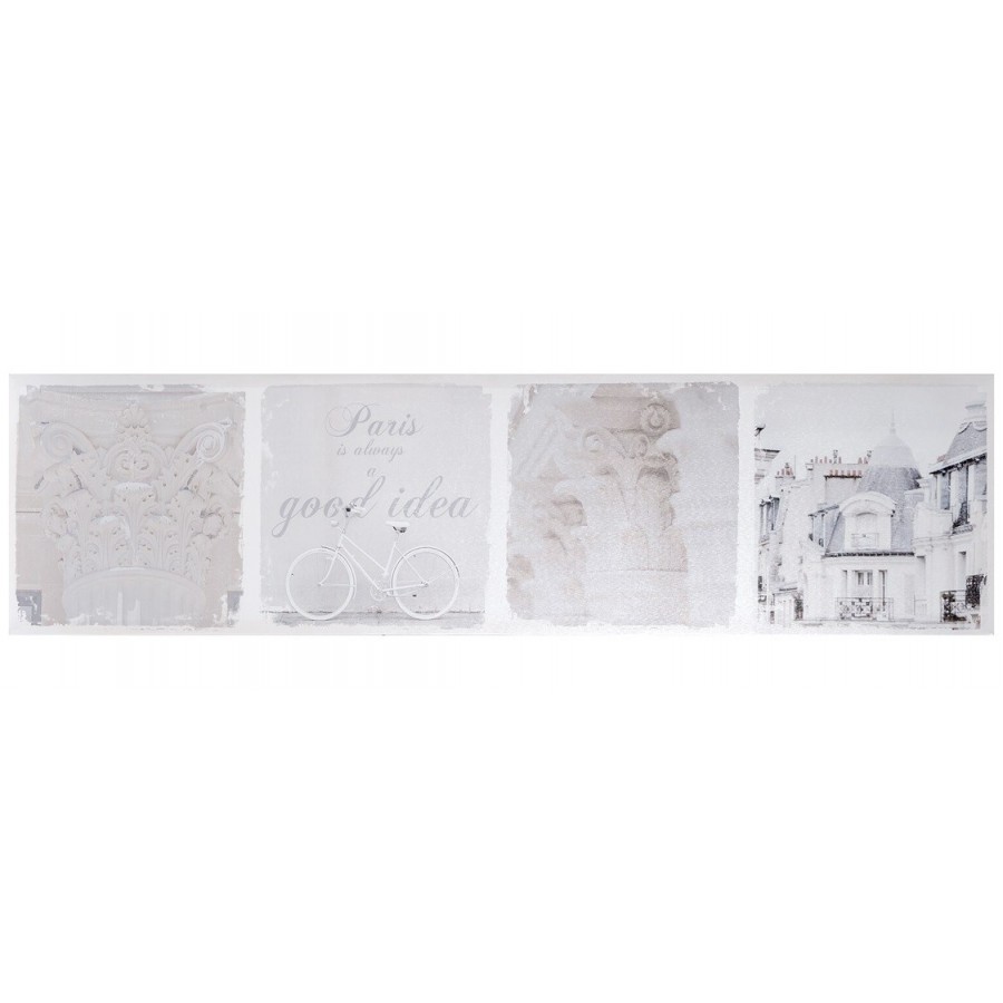 Długi- mierzący 120 cm obraz Belldeco składa się z czterech mniejszych malunków. Są to wizerunki: pięknego obiektu architektonicznego, białego roweru oraz głowic kolumn. Malunek został oprawiony drewnianą ramą i namalowany na płótnie – z pewnością z gracją będzie prezentował się w mieszkaniu. Zachęcamy!