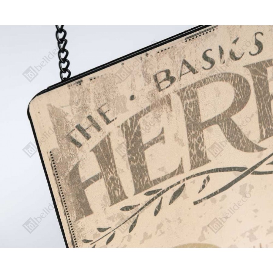 Charakterystyczne metalowe tabliczki to wspaniały pomysł na podkreślenie klimatu naszej kuchni. Miłośnicy naturalnych, nieprzesadnych kompozycji nacieszą oko stylizowanymi obrazkami podstawowych ziół i ich krótkimi opisami. Nierzucające się w oczy tło utworzone z niewyraźnych, rozmazanych napisów dopełnia całokształtu obrazka.