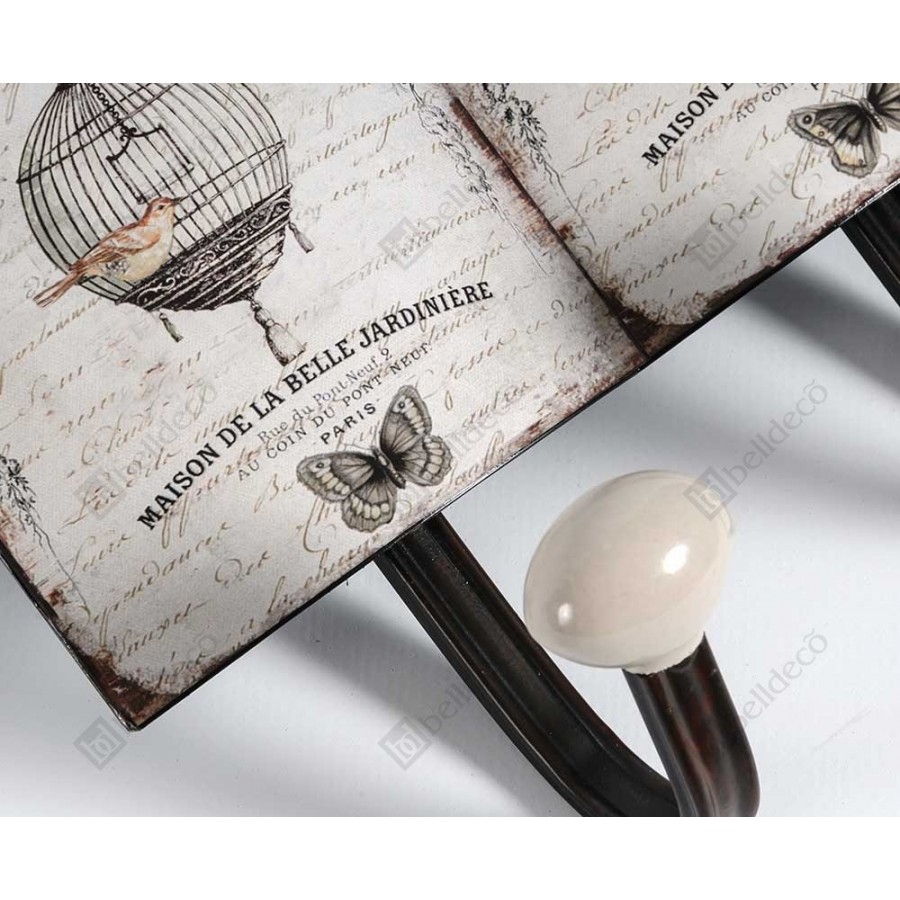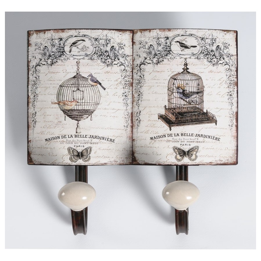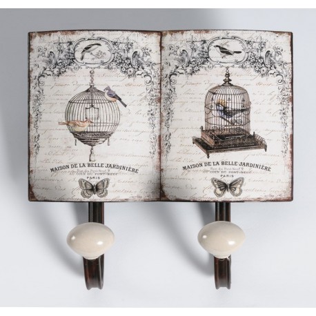 Prezentujemy podwójne wieszaki retro marki Belldeco z przewodnim motywem dekoracyjnym przedstawiającym stylowe klatki dla ptaków i kolorowe ptaszkki. Tło stanowią niewyraźne napisy i kwieciste elementy dekoracyjne. Wieszaki zakończone są ceramicznymi kulkami, dzięki czemu powieszone okrycia czy inne tekstylia nie będa narażone na rozdarcie czy zniszczenie.