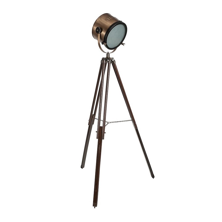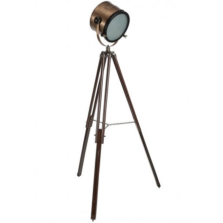 Na trójnogim drewnianym, industrialnym statywie umieszczony jest reflektor typu scenicznego. Niezwykły pomysł na aranżację niezapomnianego wnętrza, gdzie znajdzie się miejsce i na prywatność i na swobodę przebywania.