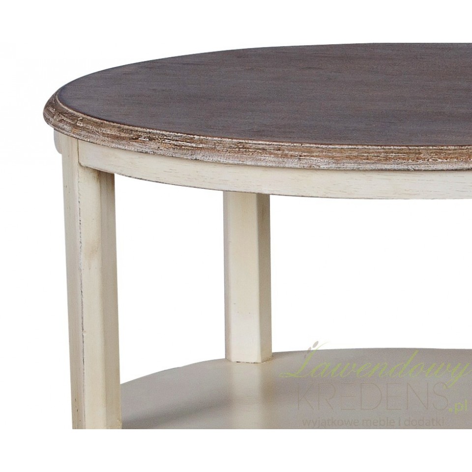 Niezwykle stylowy, doskonale nawiązujący do epoki prowansalskiej stolik w stylu prowansalskim, którego owalny kształt i blat wsparty na przedłużeniu nóg są niejedynymi zaletami.