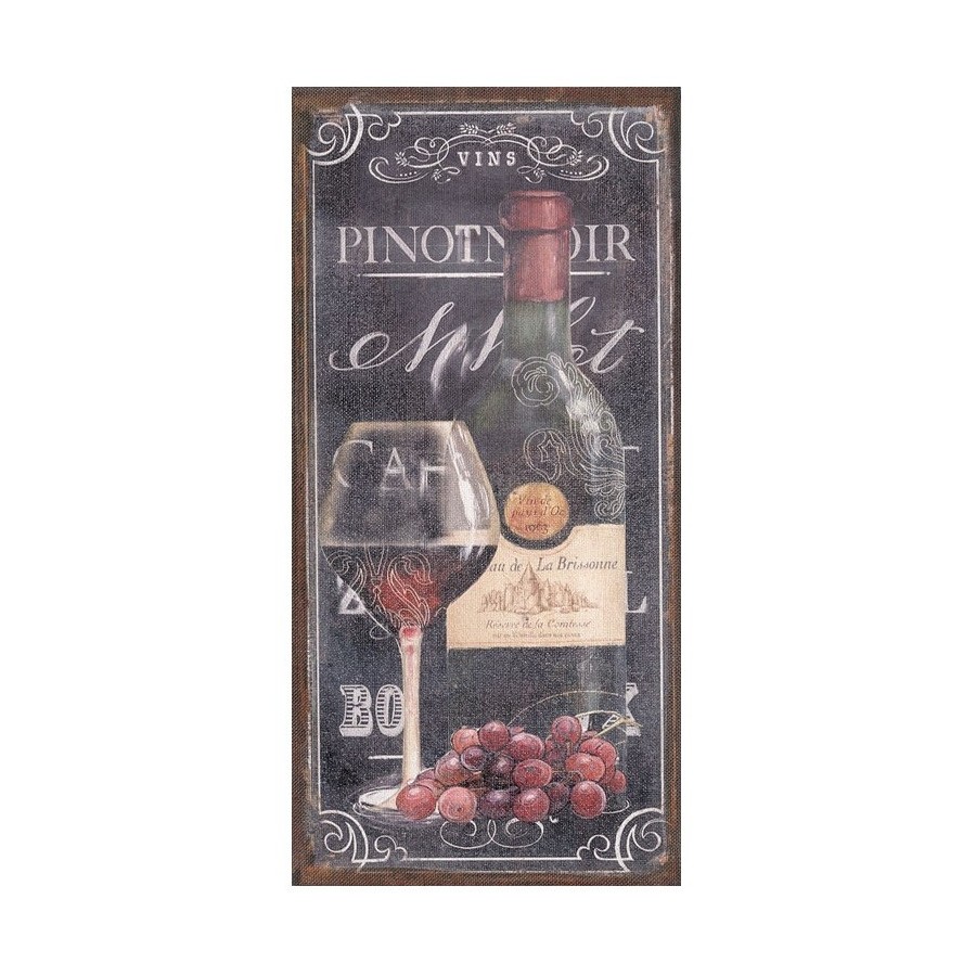 Wysoki obraz Vintage namalowany na prostokątnej desce, to ujmująca grafika z czerwonym winem w tle.