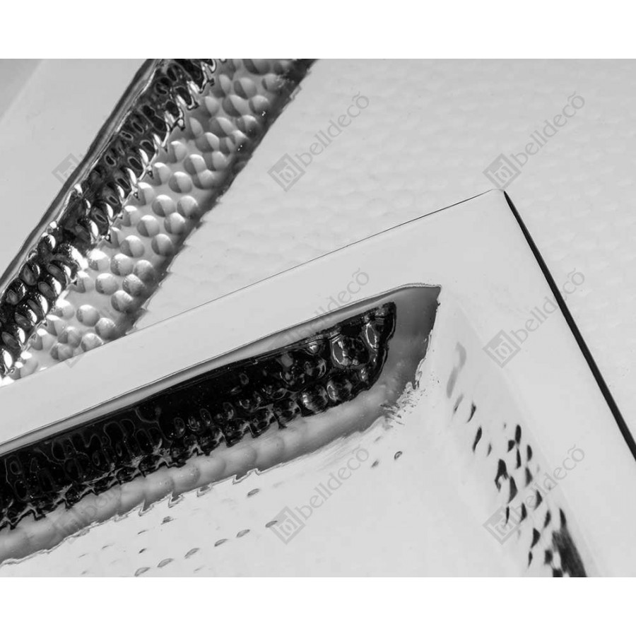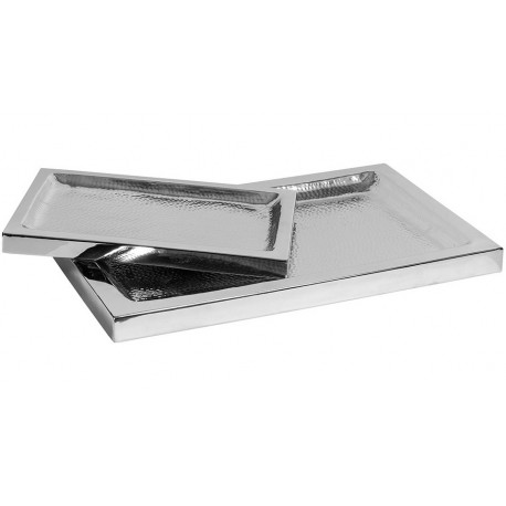 Metalowa taca Belldeco o srebrnym kolorze, została ukształtowana na wzór prostokąta. W środku tacy umieszczono wklęśnięcie, dzięki czemu przenoszenie przedmiotów jest łatwiejsze i bezpieczniejsze. Ozdobę tacy stanowi wzorowanie – małe, wklęsłe okręgi. Polecamy!