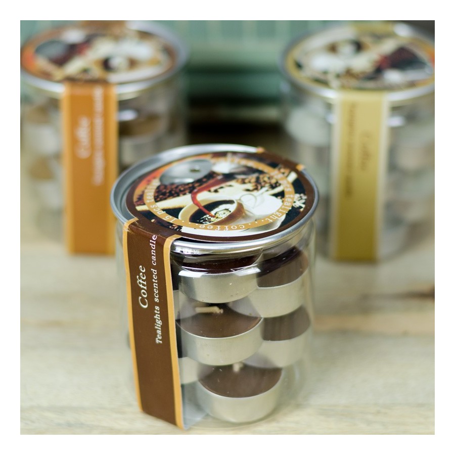 Świeczki tealight kawa to ładnie wyglądające wkłady do lampionów i świeczników, w które tchnięto piękny zapach ziaren kawowych.