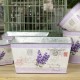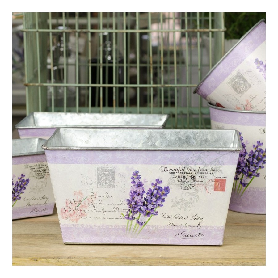 Metalowe osłonki na doniczki z papierowym nadrukiem, gdzie motyw lawendy i stylizacja na kartkę pocztową są głównym elementem dekoracyjnym. Świetnie sprawdzą sią zarówno w zamknietym wnętrzu jak i na otwartej przestrzeni. Sprawią, że Twój ogród będzie wyglądał oryginalnie i zjawiskowo.