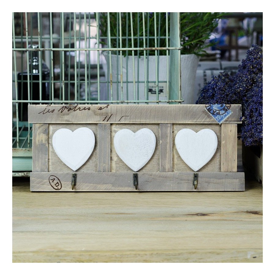 Jeżeli chodzi o dodatki prowansalskie, to drewniany wieszak prowansalski jest strzałem w dziesiątkę. Praktyczny, estetycznie wykonany stanowić może ozdobe Twojej kuchni, łazienki czy holu. Prostokątny kszatłt podzielony na trzy część, w każdej z nich białe, również drewniane, serce. Pod sercami trzy uchwyty. Elegancja połączona ze swobodą.