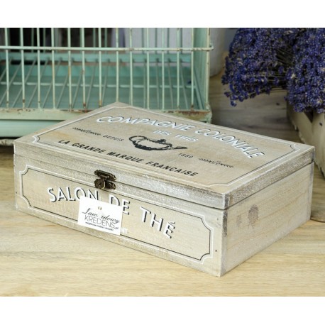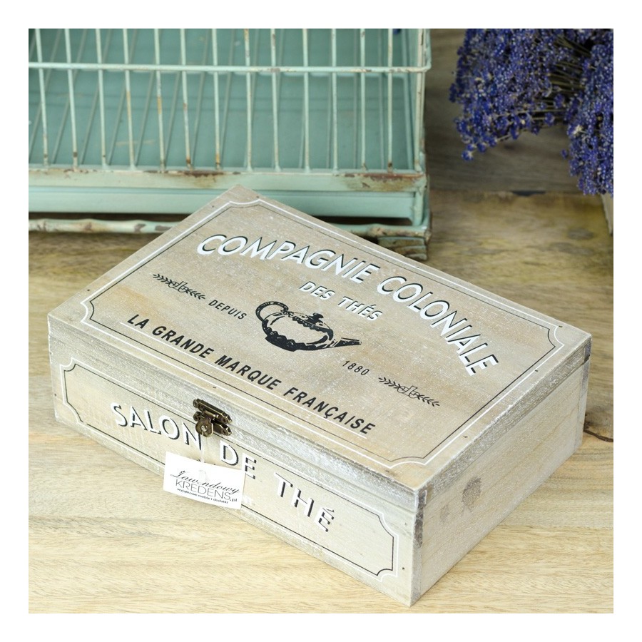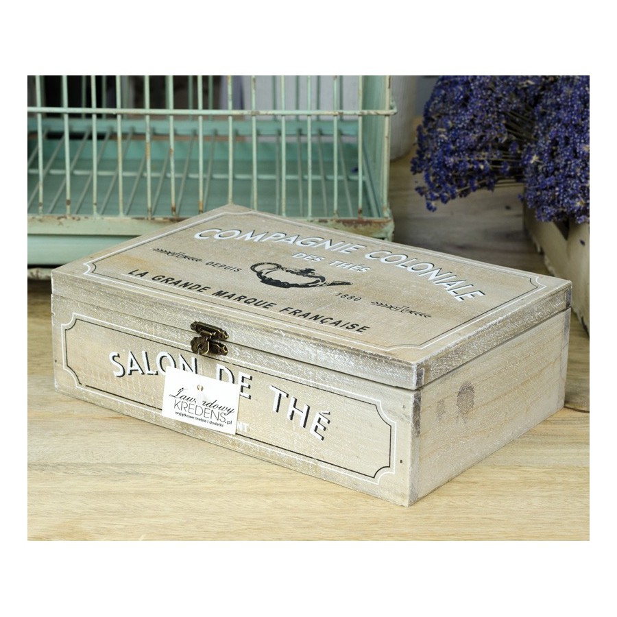 Prostopadłościenne pudełko na herbatę w stylu francuskim, bardzo pojemne, praktyczne, a zarazem eleganckie.