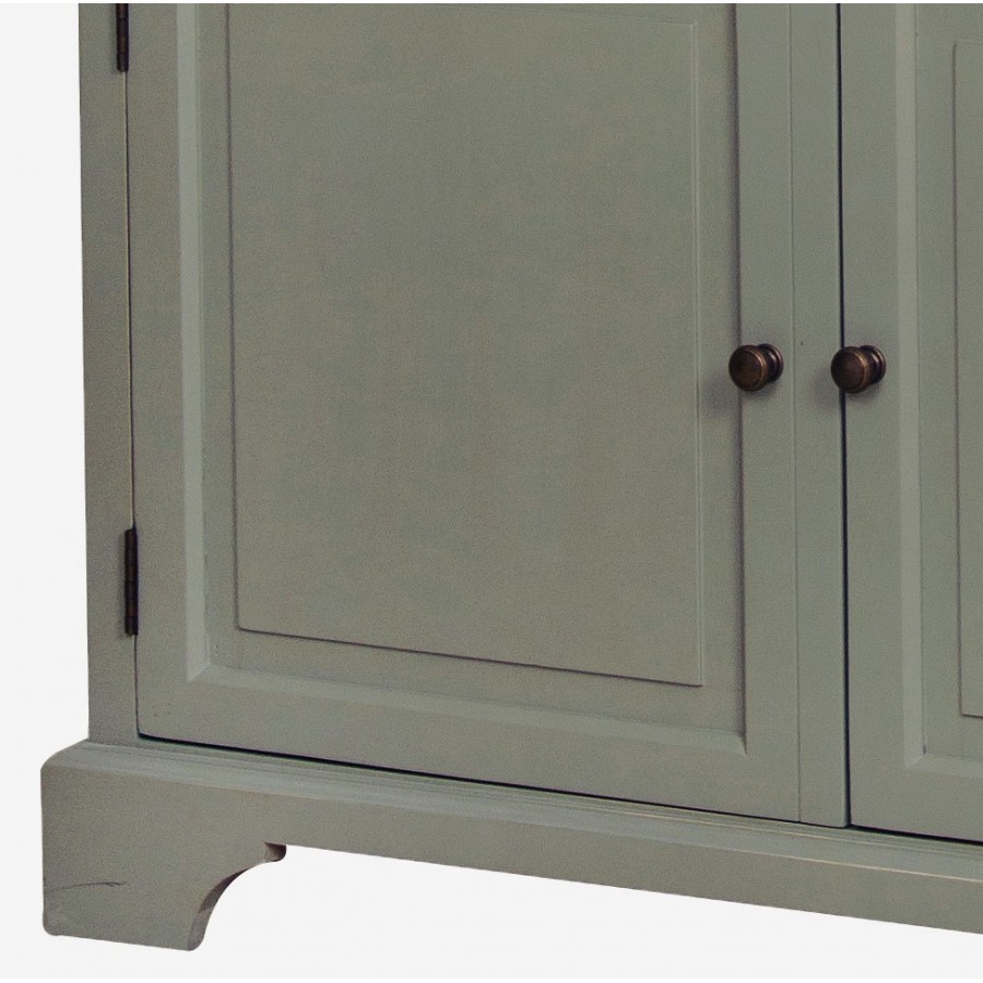 Kredens w stylu prowansalskim o dużej pojemności to cudowny, drewniany mebel, wykonany w starym stylu. Kredens posiada sześć półek, zamykanych szklanymi drzwiczkami z ładnym krzyżaczkiem i eleganckimi uchwytami. W dolnej części mebla, znajdują się trzy szuflady oraz półki z drzwiczkami. Kredens zdobiony jest w sposób delikatny – symbolicznymi żłobieniami, które dodają całości uroku. Mebel utrzymano w kolorystyce szarości oraz beżu. Meble w stylu prowansalskim - polecamy!