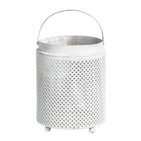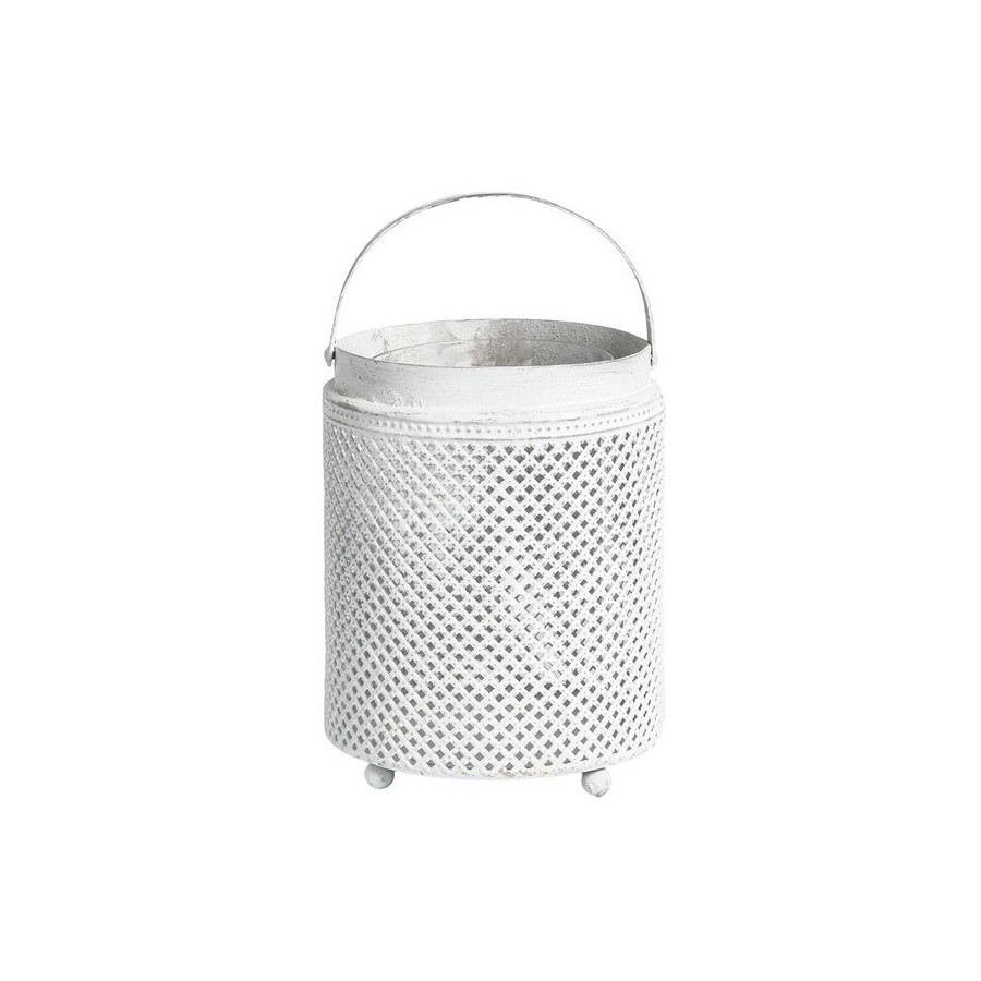 Bardzo gustowne białe lampiony wykonane przez firmę Belldeco składające się z metalowej, ażurowanej obudowy.