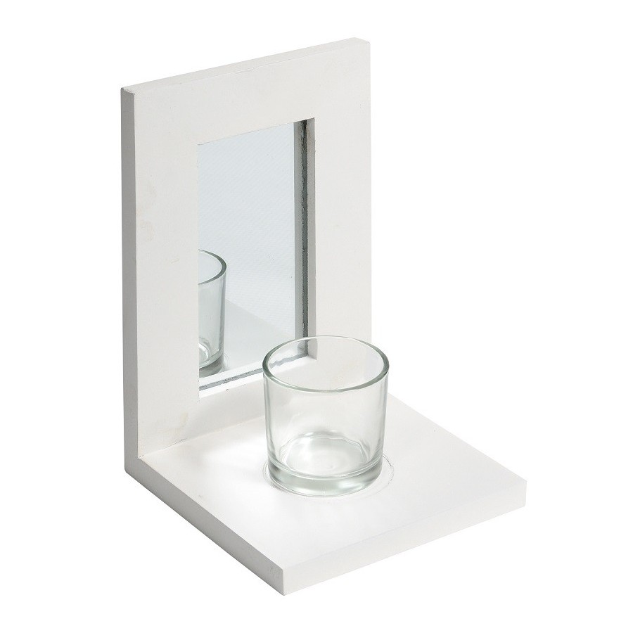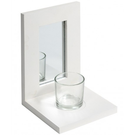 Świecznik Belldeco z lusterkiem to połączenie uroczego białego świecznika ze szklanym naczynkiem – miejscem na świeczkę, ze skromnie oprawionym lusterkiem. Całość tworzy elegancki lampion do zawieszenia, który z pewnością rozjaśni mieszkanie i wytworzy w nim romantyczną atmosferę.Dzięki znajdującym się na tylnej ściance lampionu uchwytom lampion ten można także powiesić na ścianie.