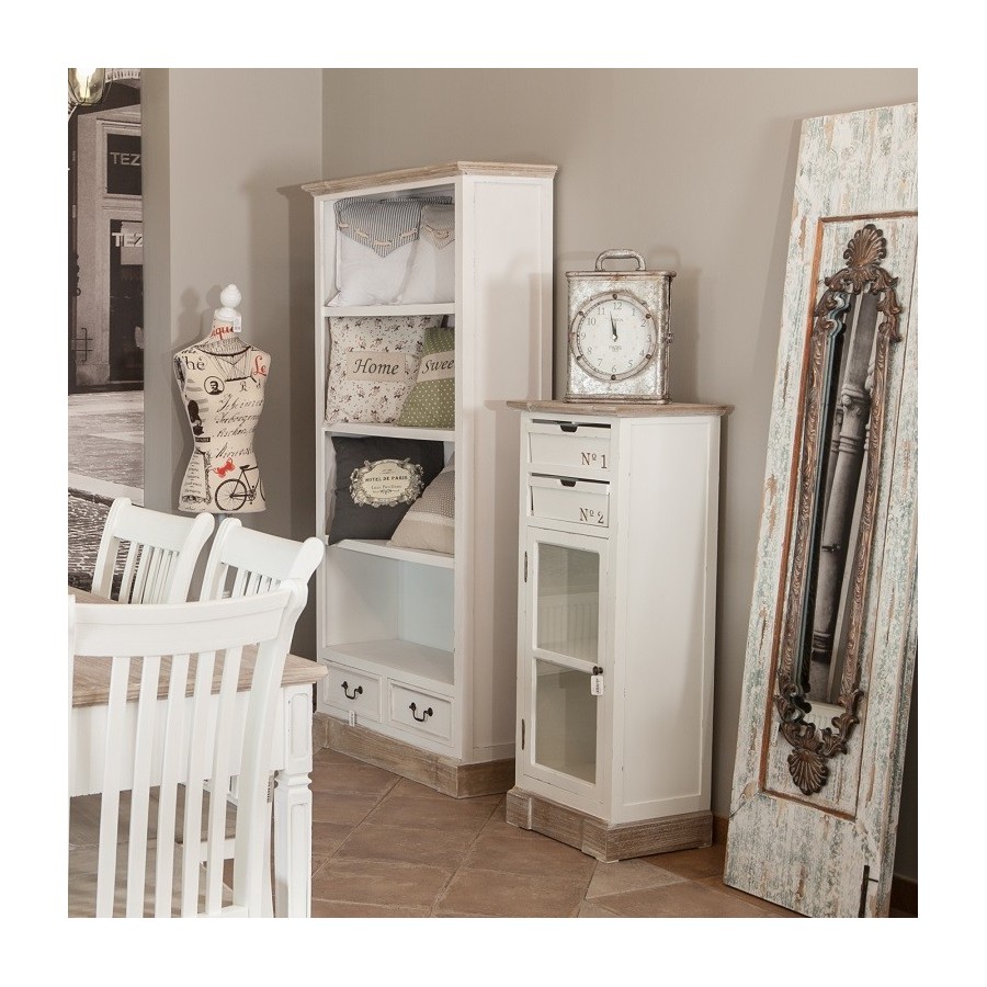 Biały regał Aluro w prowansalskim stylu sprawdzi się na przykład jako regał na książki, pamiątki lub zabawki.