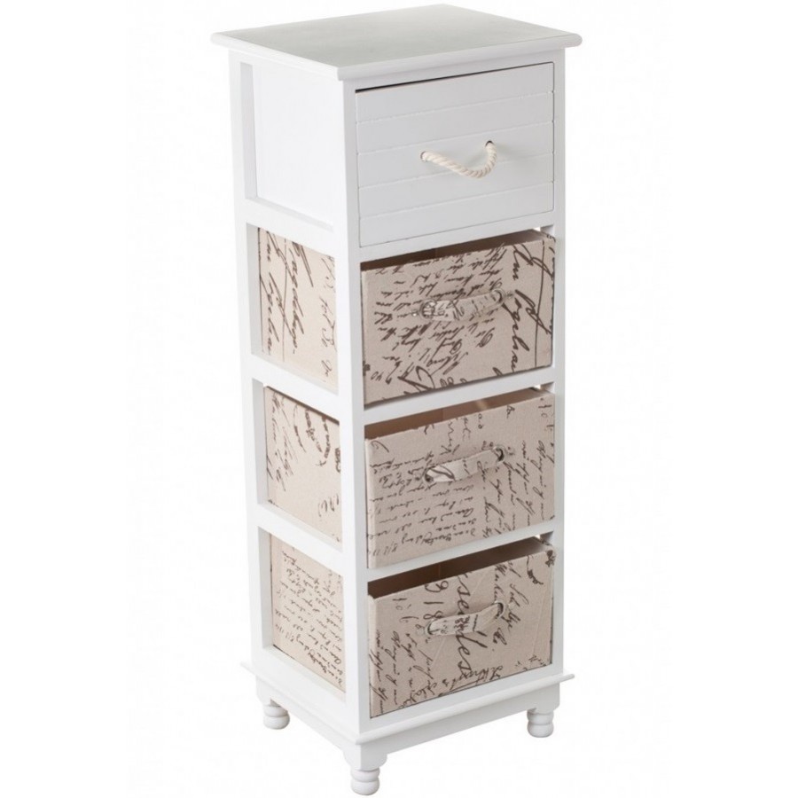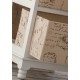 Uniwersalna, bardzo praktyczna i stylowa szafka z Kolekcji Filatti marki Aluro. Świetna do łazienki, sypialni, pokoju dziecka czy jako szafka na buty. Klasyczna, stonowana biel połączona została z charakterystycznym dla stylu prowansalskiego materiałem z motywem kartki pocztowej. Materiałem tym obite są trzy dolne szuflady szafki.