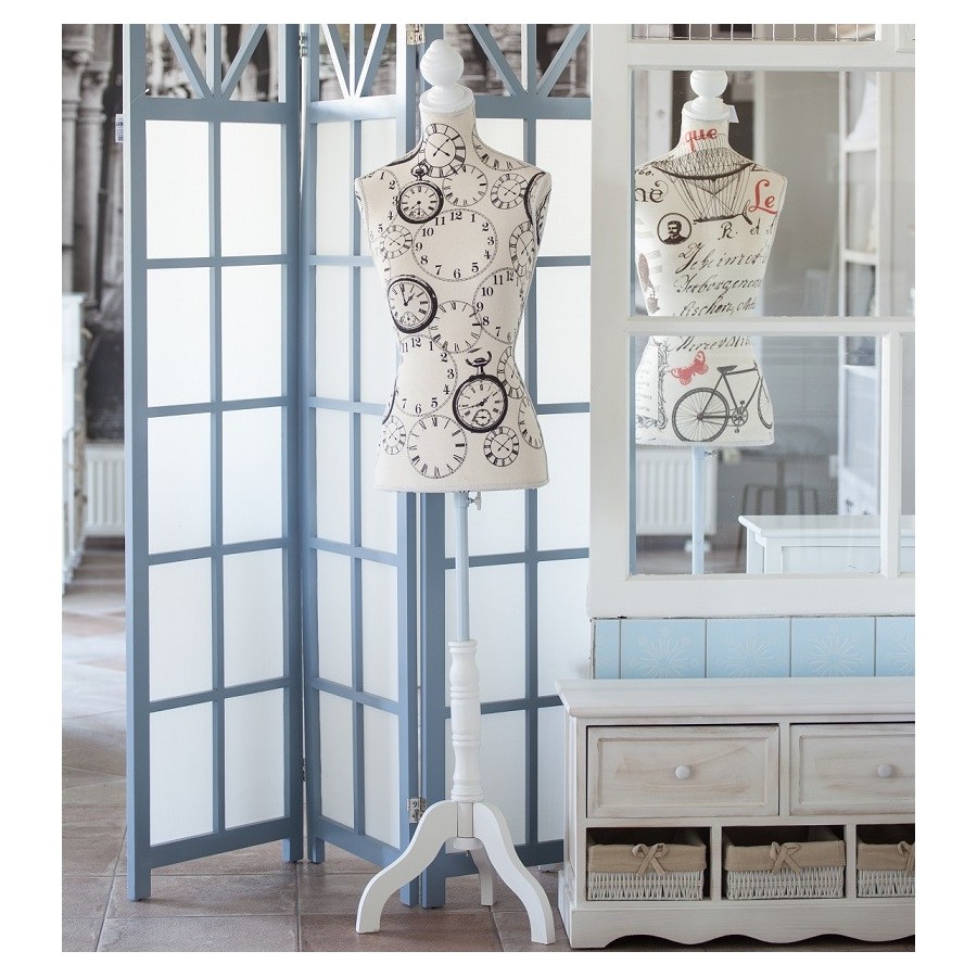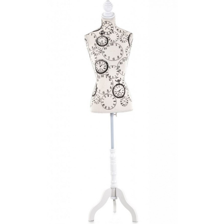 Prezentujemy manekin w stylu prowalsalskim Filutti, który wygląda nad wyraz interesująco i ciekawie. Wszystko dzięki materiałowi w liczne, zegary, zegarki, zegareczki. Jeżeli chcesz, aby Twoje wnętrze nabrało wyrazistego klimatu, a ubrania nie gniotły się leżąc na krześle, to manekin dekoracyjny jest dla Ciebie stworzony!