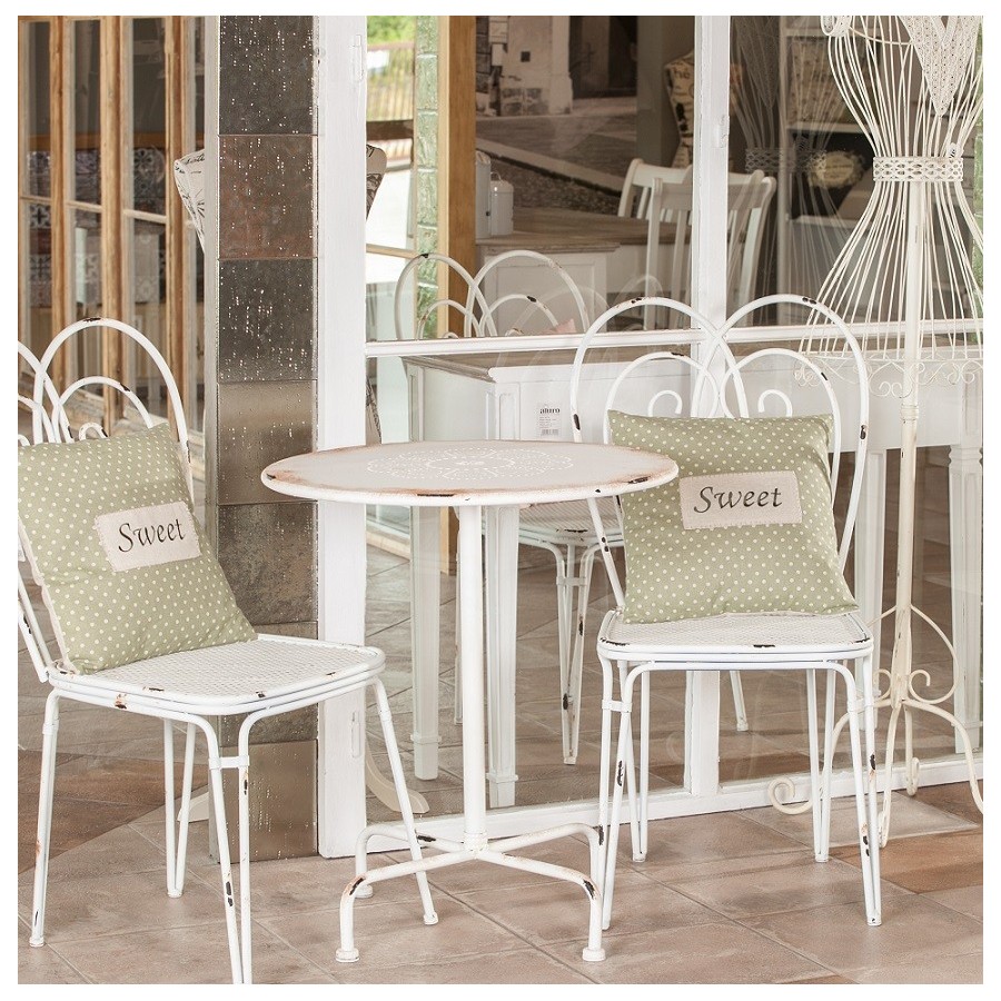 Stabilne i wytrzymałe krzesło w stylu prowansalskim w klasycznym białym kolorze. Na oparciu, nogach i siedzisku widoczne są liczne ślady przetarć farby i zardzewienia. Dzięki temu zabiegowi krzesło Lamali wygląda naturalnie i doskonale komponuje sie z pozostalymi meblami z serii. Na klimatyczne ażurowe siedzisko można położyć śliczną poduszkę na krzesło dla jeszcze wiekszej wygody.