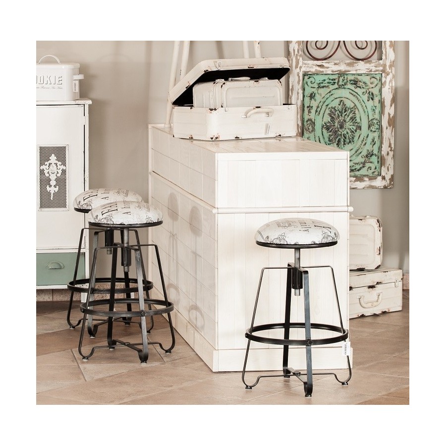 Prowansalski charakter nadaje mu wykończenie z eko- skóry w czarno-białym kolorze z napisami i wzorami.